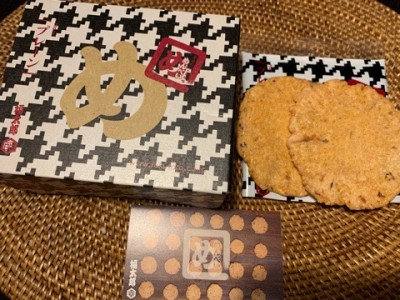 先日は、博多土産の美味しいおせんべいを頂きましたよ。
