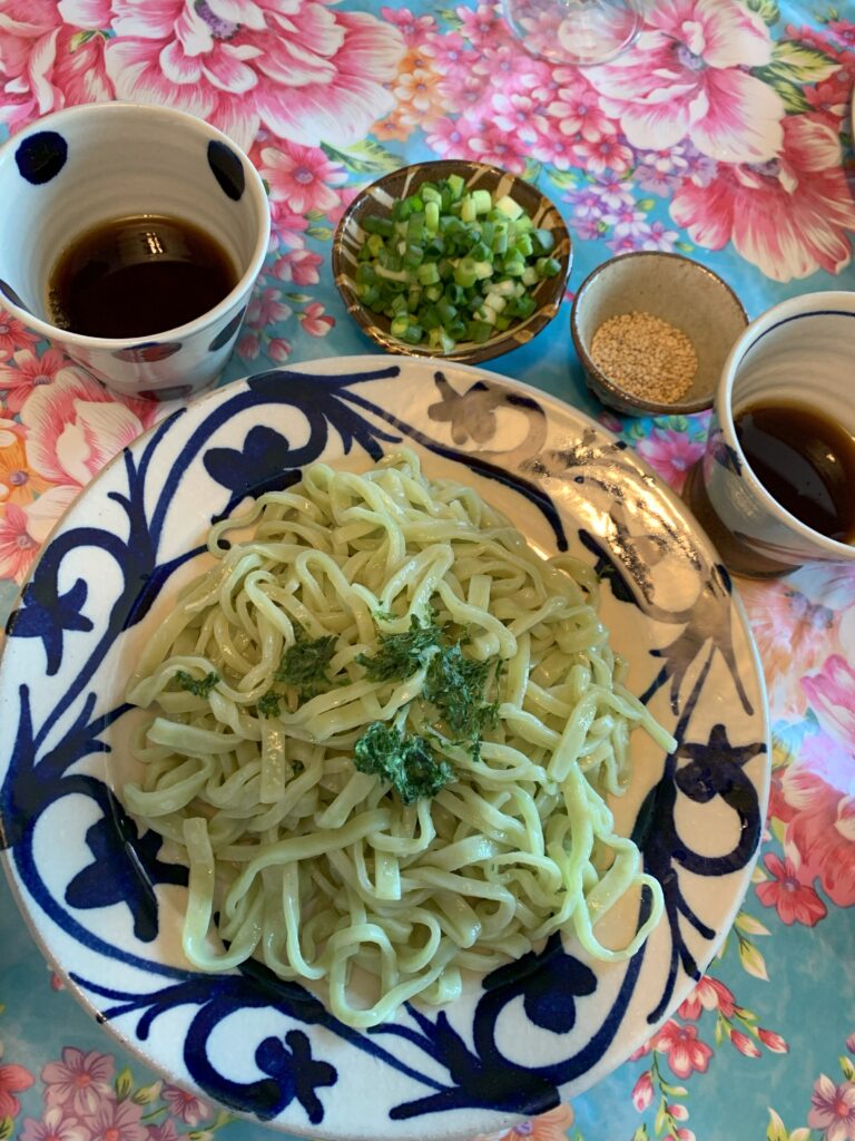 昨日はアーサー(あおさ)を練りこんだめんをいただきました♪