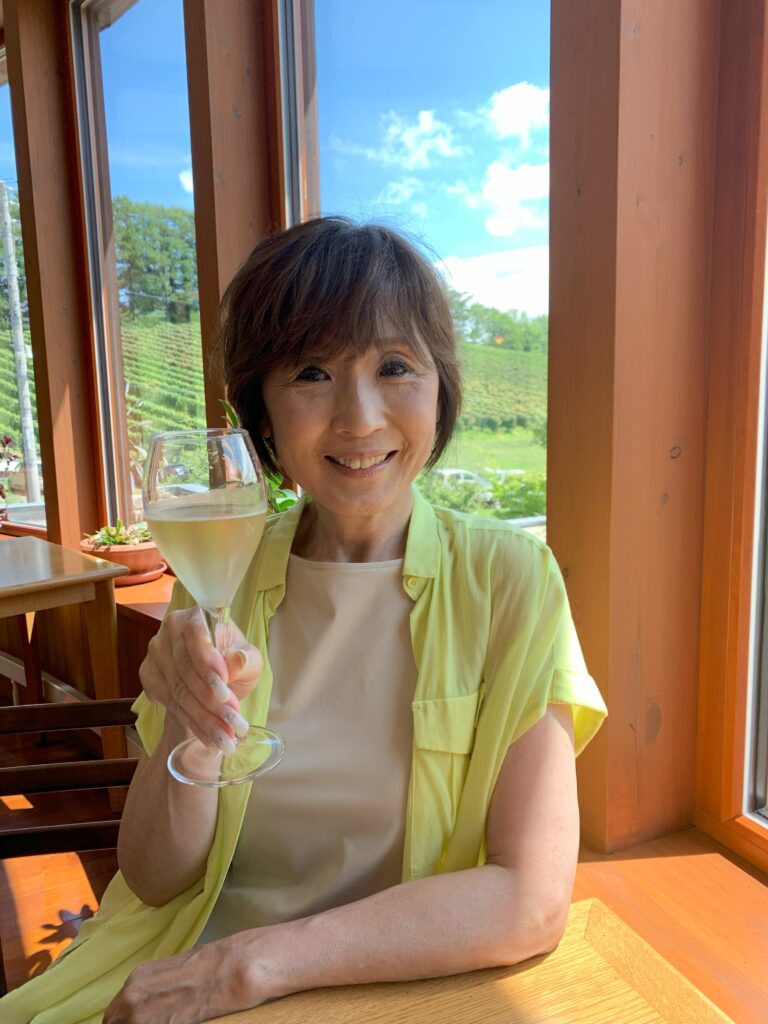 夏の青空、緑の葡萄畑を眺めながらのランチ、