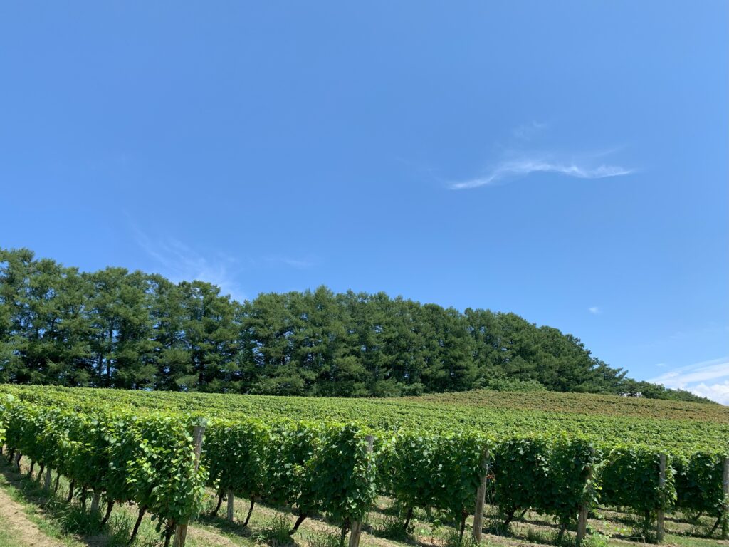 夏の暑い日差しのもと、葡萄たちはすくすくと健やかに育っていました。