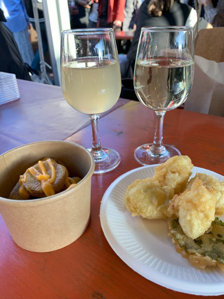北海道産ワインとシードル、北海道のホタテとじゃがいもで楽しむハッピーアワー。