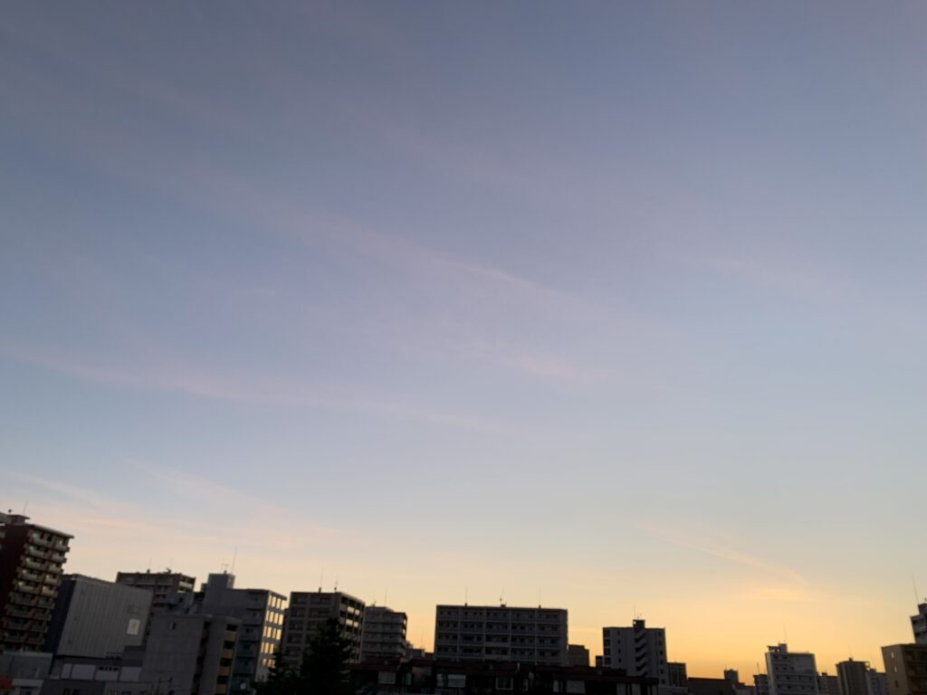 東の空の朝日が秋晴れを予感させます。