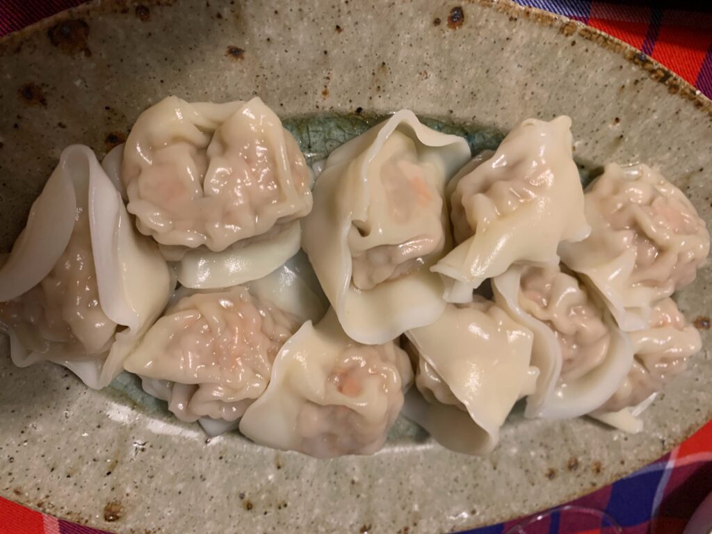 さて、沖縄から帰省した息子夫婦を迎えての家族ディナー、中くらいの前菜として登場した水餃子2種。