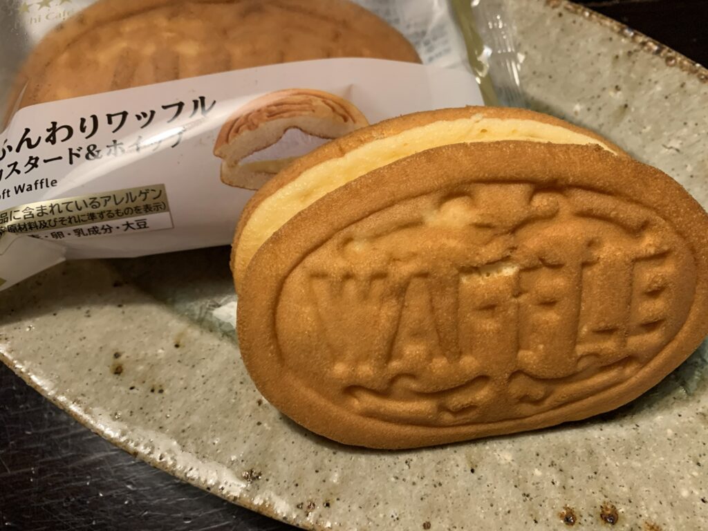 多くは格子状ですが、コンビニのワッフルにも「WAFFLE」の凸凹模様が確認できる。