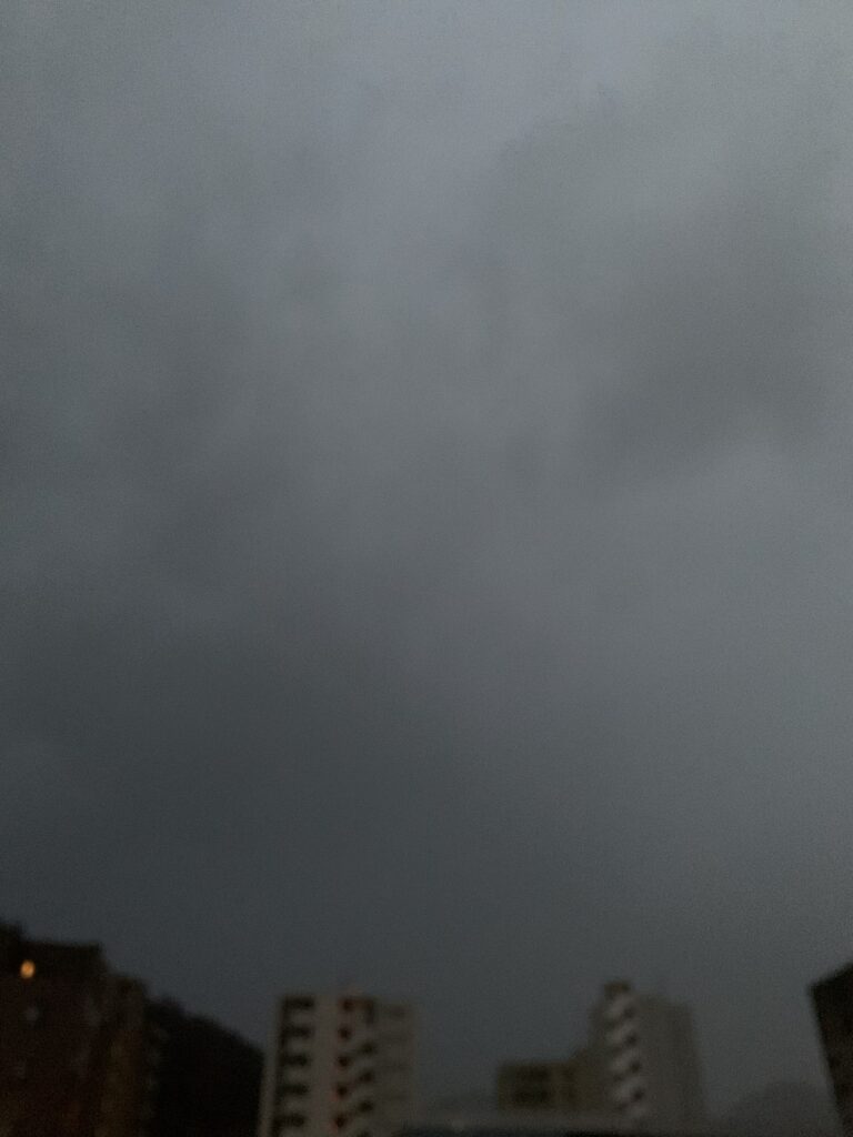 早朝から時折、一瞬の閃光ののち、ドドドドーンッ!激しい雷鳴が響き渡ります。