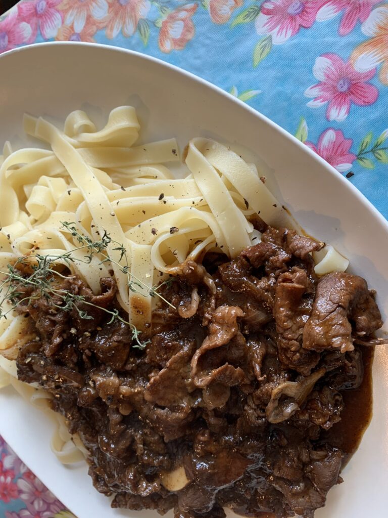 「ブフ・ブルギニヨンソースのフェトチーネ」