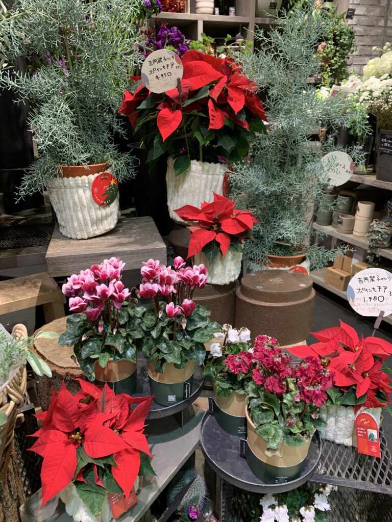 この鮮やかなクリスマスカラーの鉢植えを見ると一気に聖夜気分になります。