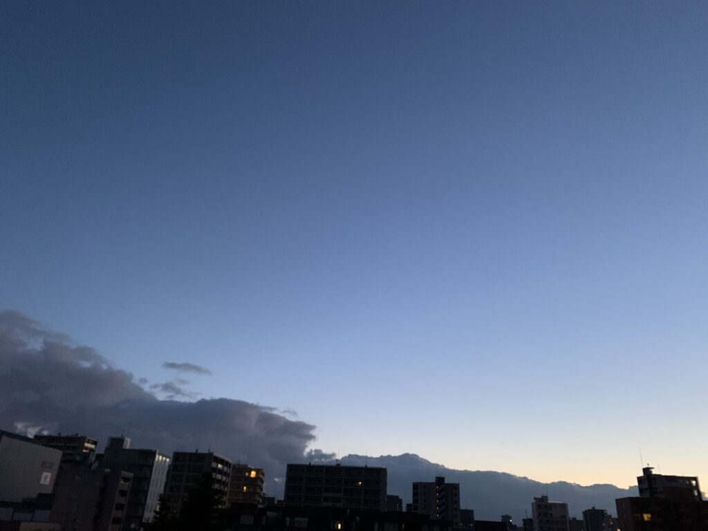 明け方の東の空も地平線の雲の上は明るくなってきました。