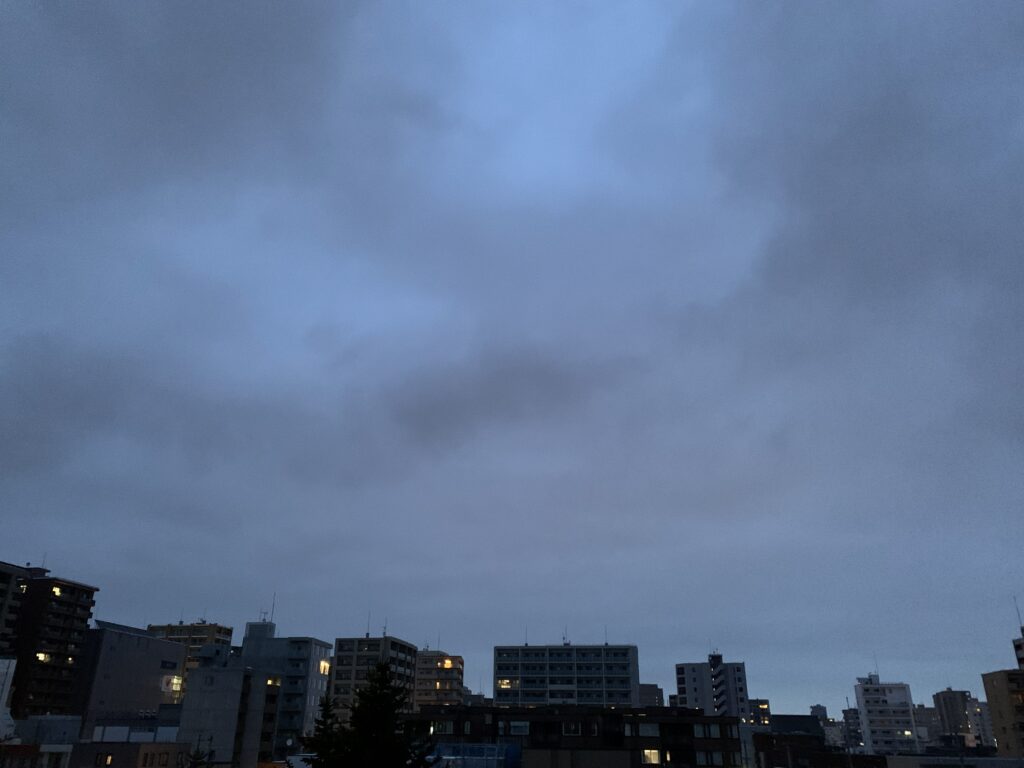 日の出直前のブルーグレーの空・・・サンタさんのそりは・・・・