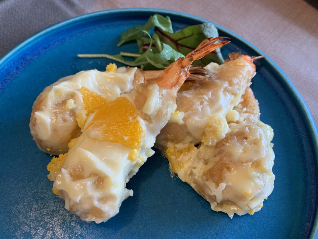 これがまぁ、デカいのなんの、ぷりっぷりの大海老に柑橘香るマヨがぴったんこ。