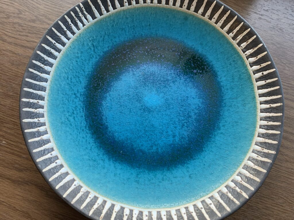置いているだけで景色が美しくなる器です。さっそく、我が家のやちむんチームに仲間入り。