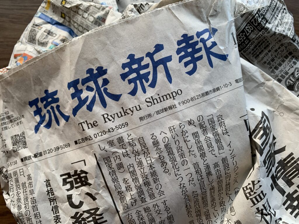 沖縄の地元紙にぐるぐるくるまれエアキャップで包まれていました。