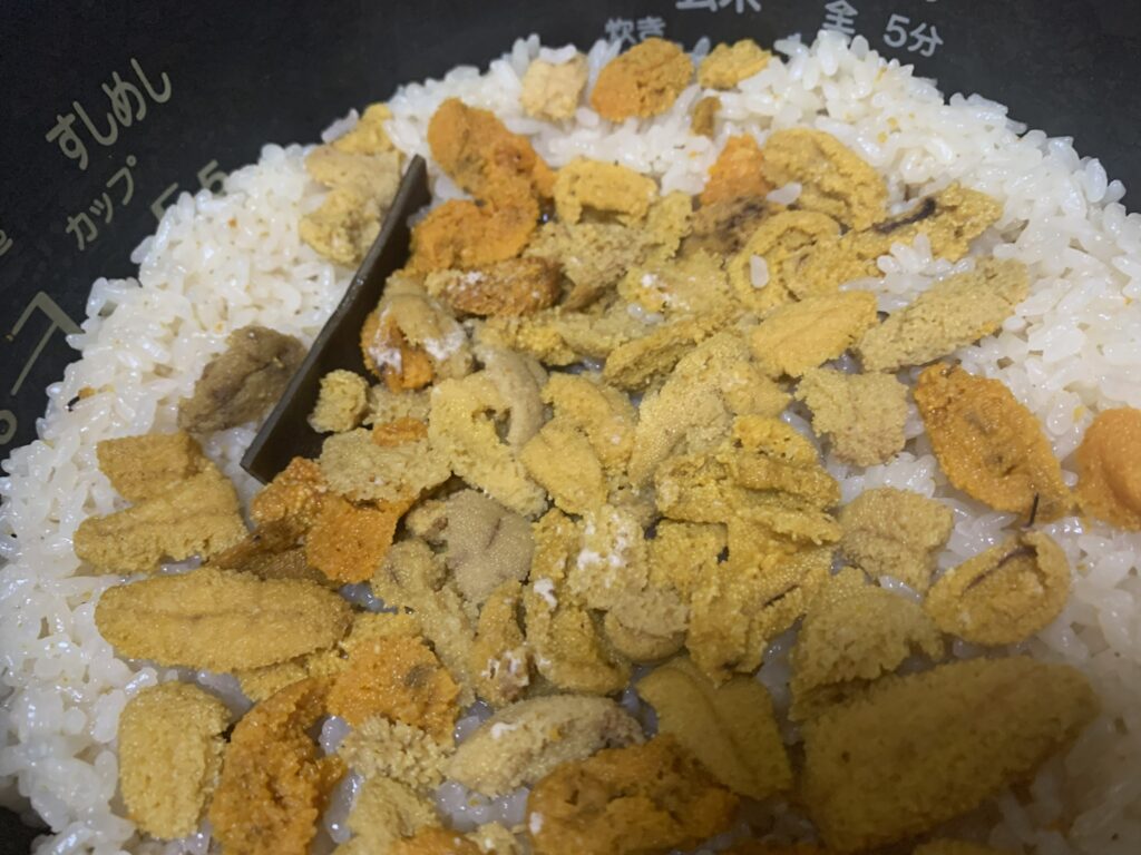 「春を待つうにの炊き込みごはん」の完成です。