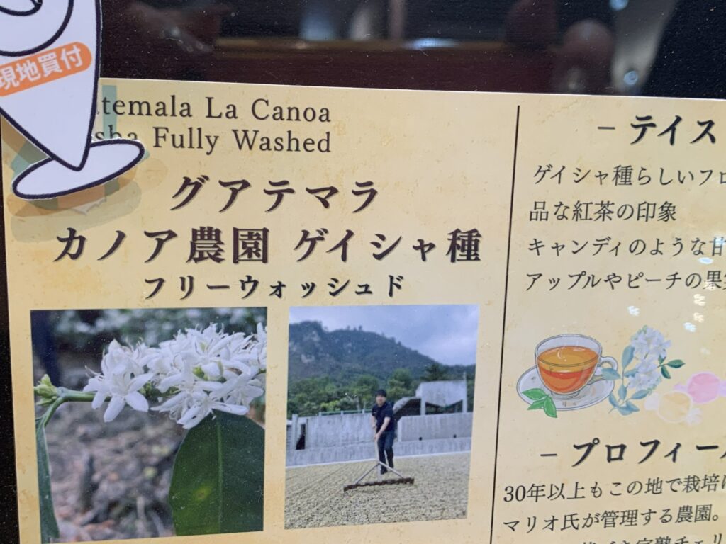 「そうなんです、ゲイシャ種は紅茶のような風味がするんですよ」とお兄さん、にっこり。