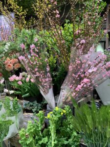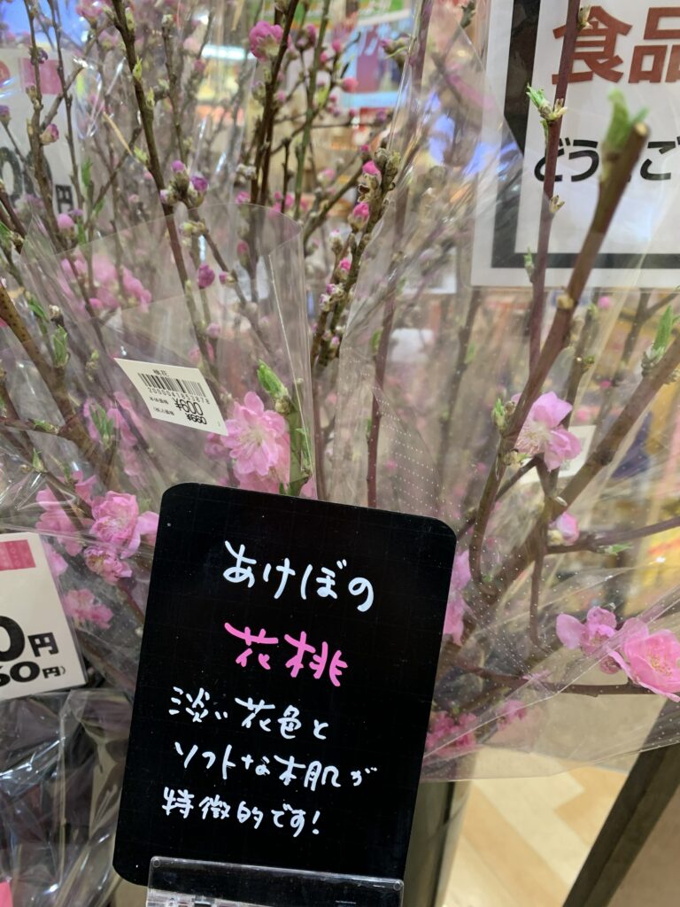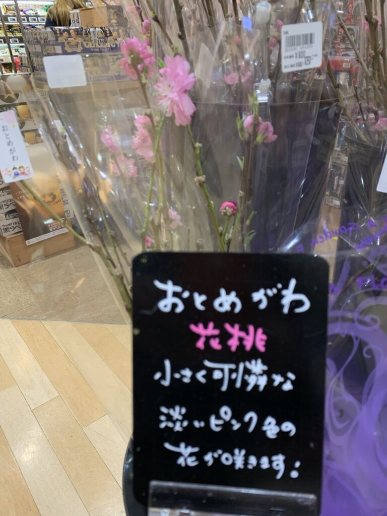 ひな祭りを前に桃の花がたくさん並んでいました。